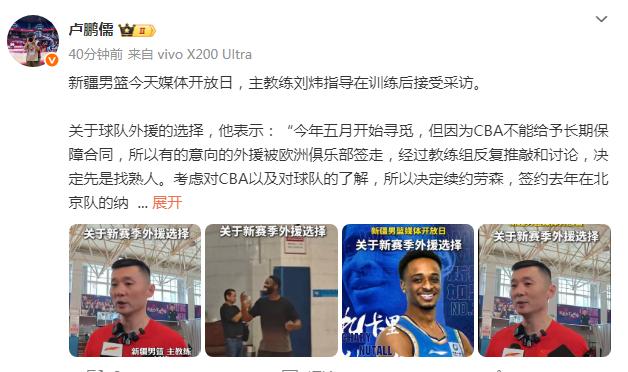 如今新疆男篮主帅刘炜透露球队的外援情况,刘炜表示“今年5月开始寻觅,但因为CBA不能给长期保障合同,所以有意向的外援被欧洲俱乐部签走。经过教练组反复推敲和讨论,决定先是找熟人。”
